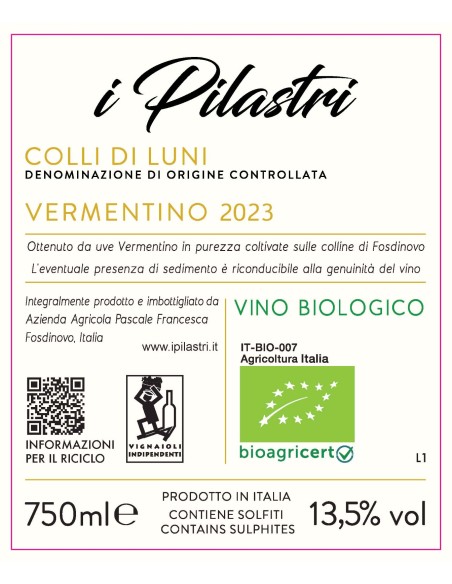 The Vermentino of Colli di Luni is a wine DOC which boasts its production only in provinces of La Spezia and Massa-Carrara.