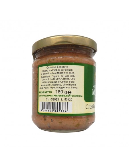 Chicken livers are fried in extra virgin olive oil with mixed vegetables, are then shaded with white wine and finally are smoothies with all other ingredients obtaining flavorful and tasty patè. Heat for some minutes the Tuscan crouton at slow heat, meanwhile toast the bread, when is hot, sprinkle on the croutons obtaining an excellent appetizer.