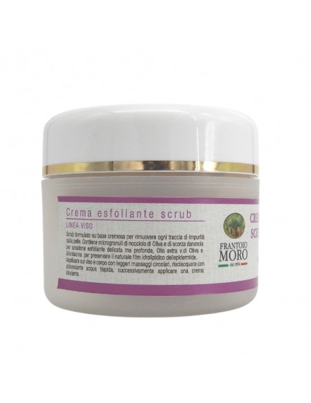 Mild scrub cream with extra virgin olive oil. The exfoliating particles are obtained from olive stones, to smooth delicate, and from orange peel, to an effect “gommage” and a slow-release of essential oil. Spread a thin layer on the face or areas of the body where the skin is thickened or turned off; to massage with light movements and finally gently remove with lukewarm water.