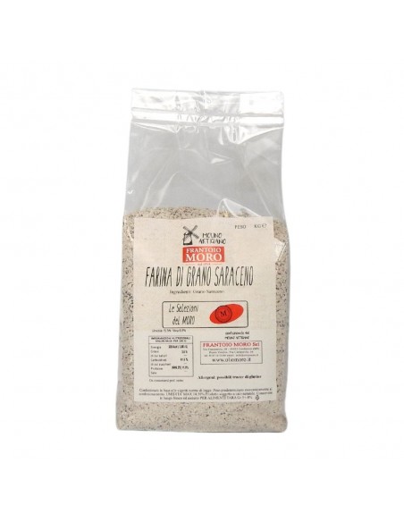 Characterized from the typical dark color is utilized in a lot of recipes of tradition, as pizzocheri and polenta, but also mixed in percent with other flours to obtain a dark dough more or less. The buckwheat flour is very poor of gluten but is not always adapt for people with celiac disease, in return gives to the body a considerable energy intake and of iron.