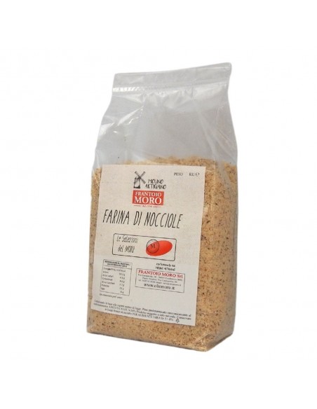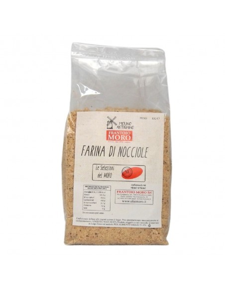 This flour is obtained from the grinding of hazelnuts not presents the classic characteristics nutritional of flours of legumes or of cereals but is poor of carbohydrates and rich of lipids, reason why its storage time is limited and often is vacuum sealing. Its utilization is various from desserts, to baked goods, to icecreams and to fresh creams and creams spreads with cocoa; is utilized in percent very low also in the preparation of bread which becames very energetic.