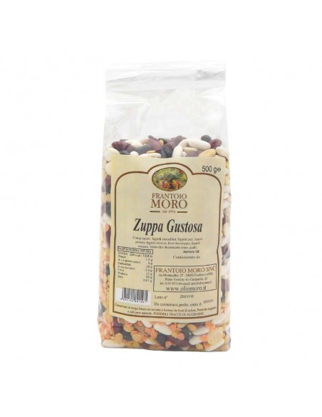 Components: Beans cannellini, rossoni, black, lentils, peeled lentils, red devils, broad beans peeled, beans crown.