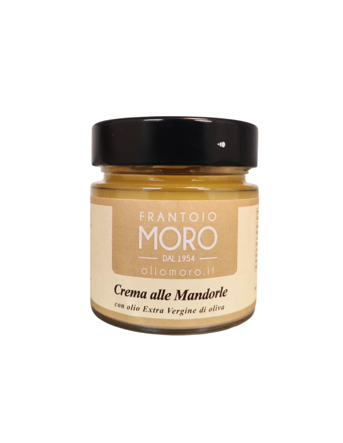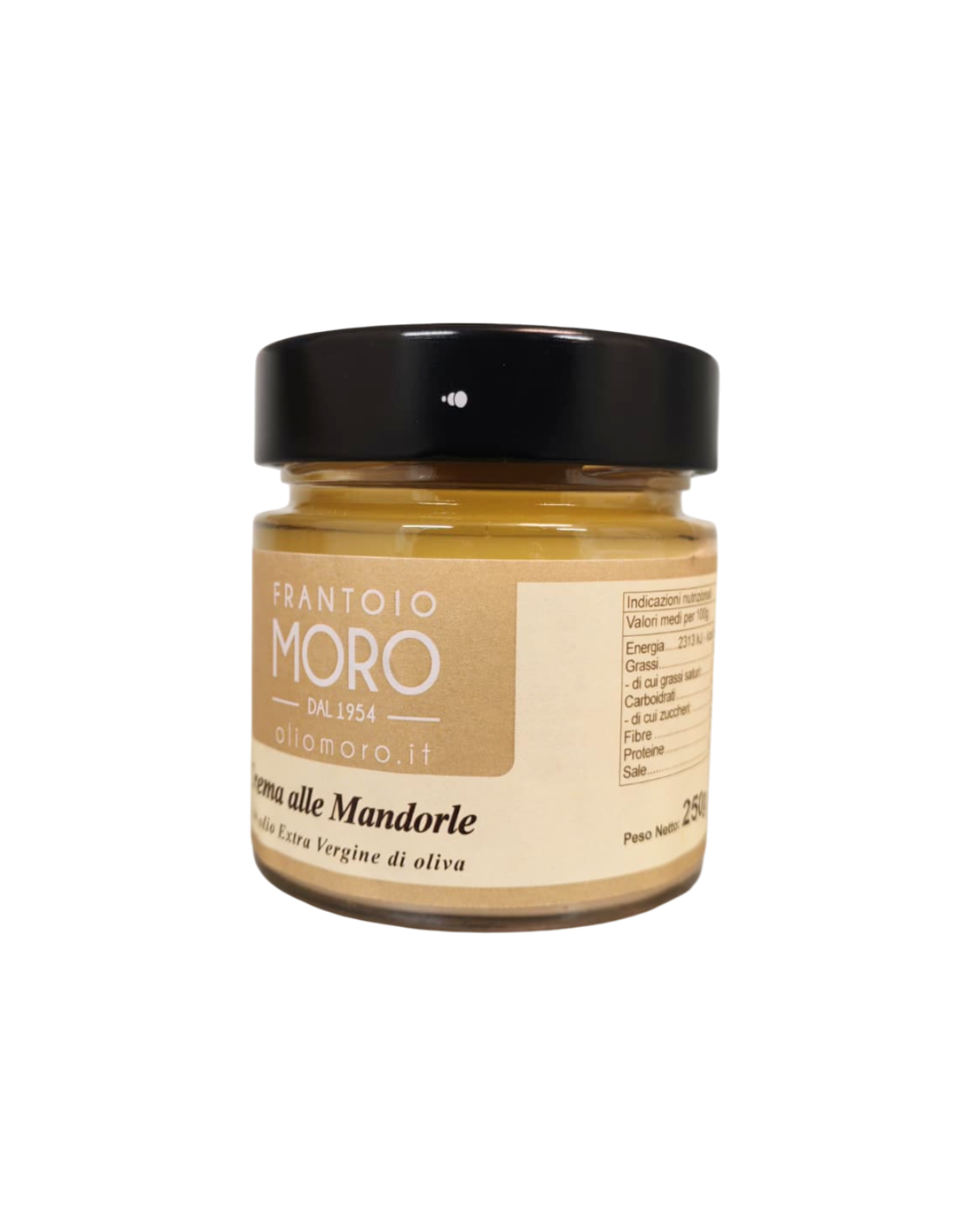ALMONDS 42%, cane sugar, extra virgin olive oil 16%, vegetable fibre, emulsifier: sunflower lecithin.